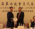 • 世福总会长张锦雄(右)颁发纪念品给澳门福